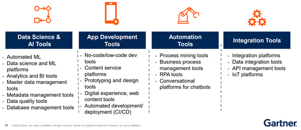Data Science and ML Platforms Low-Code Development Business Process Management tools API Management